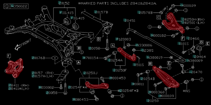 GR86&BRZ2Genの純正サスペンションアーム&ホイルキャリア(ナックルアーム)+タイロッド+ドライブシャフトを旧86BRZにそっくり換装してアップデートが可能らしく、個人的にも興味アリ!歴代のインプレッサ純正パーツチューニング手法が、86BRZでも可能になるなんて、、スバル組成の恩恵に感謝。これでまた一つ、旧86BRZのアップデート手法が増えて、乗り続けながらの進化が可能となりましたよ!以下必要換装部品をメモ的に掲載。※赤囲いパーツが当該部品