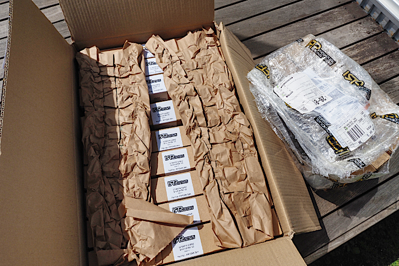 リトアニアにて梱包された荷物の一部。既にこの列は崩れました。それにしても、この箱の容積でIRPスポーツシフターが入っている、、とは思えませんよね。自分も当初そう思いました。リトアニアのエンジニアさんはロジスティクス(梱包/輸送コスト)のセンスも抜群!問題は、、さらに我が国の通貨”円”の価値が激下がり中の状況。上がれば下がる市場原理は理解出来ているのだけれど厳しすぎる。