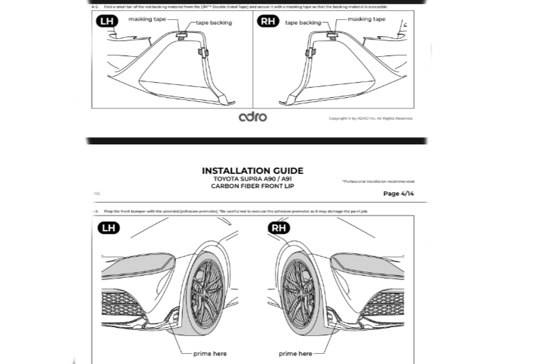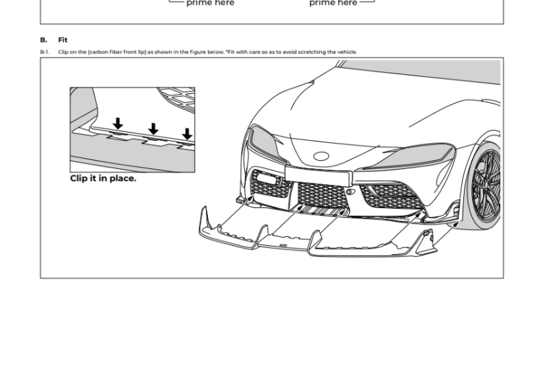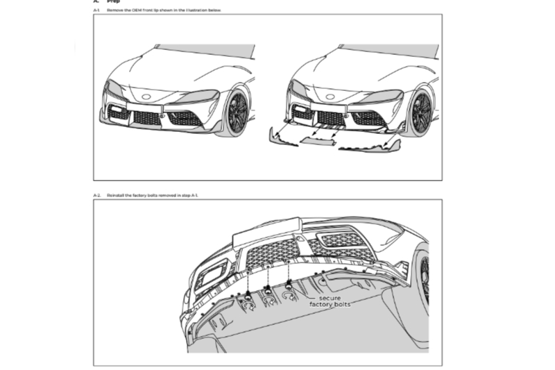 弊社WEBショップにエイドロ製GRスープラ用カーボンフロントリップの取り付けに関してお問い合わせ頂きましたので掲載しておきます。