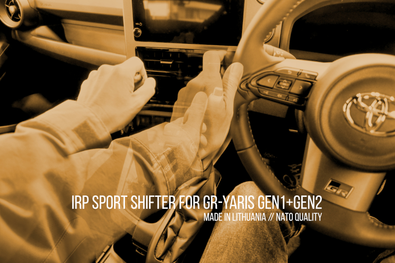 メイドインリトアニアIRPスポーツシフターGRヤリス用の宣伝!上画像がドライビング中の左手移動距離を可視化したつもり。純正シフターに比べ左手の移動距離と上下動作は確実に短くなっています。ステアリングに近いシフト位置の恩恵はドライビングに新しいリズムを刻む事。タイム短縮性能とかではなく、新しい操作時間(リズム)を楽しむツールです。IRPスポーツシフターでの変速はホント楽しく気持ちいいですよ!マジで快感変速です。で、各ポジションへの変速作動長は下記(GRガレージさいたま中央さんfacebookリンク)にてご確認頂けます。短いストロークでガツガツ決まるシフト操作!リバースロックファンクションもIRPスポーツシフターの楽しみの一つです。