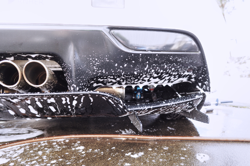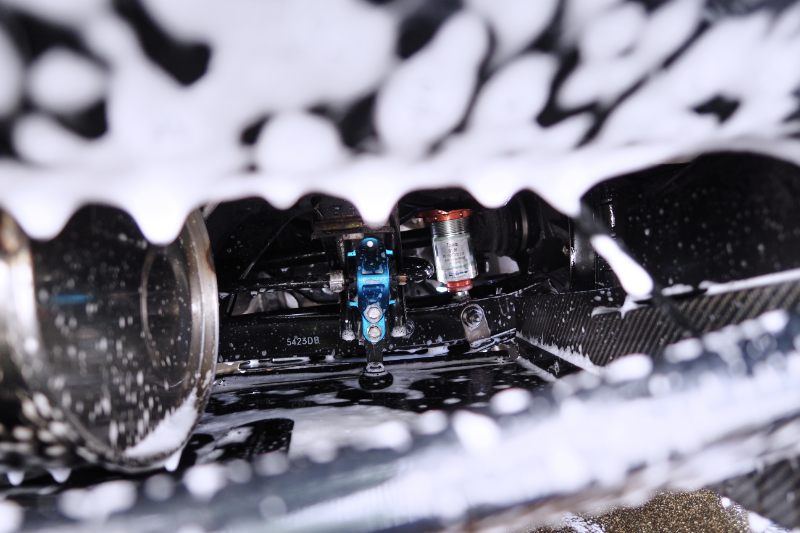 自分の場合、先ず最初にリアの大型チリトリ(ディフューザー)から洗車開始。吸い込んだ砂や泥がエアロ効果?