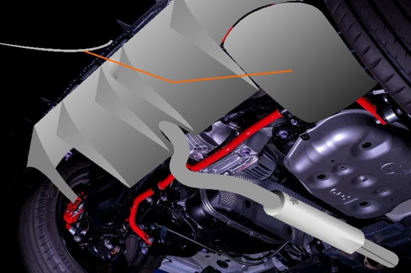 マフラーレイアウト&大型ちり取り(リアディフューザー)全景。リアディフューザー恩恵はウイング効果より大きい事を自分のクルマ(86-14R)で常に体感しているので物凄く期待しています、、GRヤリス持ってないけど(笑)。 日々精進