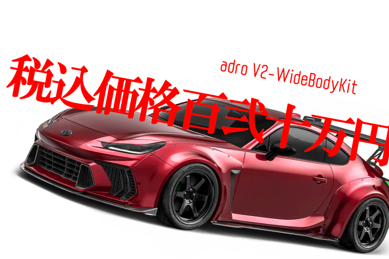 adro(エイドロ)社製、GR86&BRZ2Gen用ワイドボディキット(←製品ページリンク)の第二弾っ!V2のフルキット価格が発表されました。ウイング別売で税別定価¥120万!プラスウイングでトータル1,627Nに及ぶダウンフォースが実装可能!受注納期約2.0-2.5か月です。何卒よろしくお願い申し上げます。 日々精進