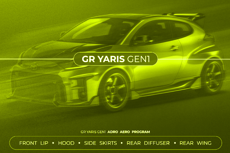 adro(エイドロ)待望の新作っ!トヨタGRヤリスGEN1用カーボンボディーパーツ(フロントリップ+サイドステップ左右+リアディフューザー+リアウイング+ボンネットフード)が明日?今晩?正式発注&受注開始みたいです。先ずはGen1のリリースで次は当然Gen2!(フロントとリアディフューザーが各専用品になるのかな?)近々に価格詳細確認致しますのでお楽しみにっ!あ!価格未定のままでも注文したい方は是非メールでお申し付け下さいー。 日々精進
