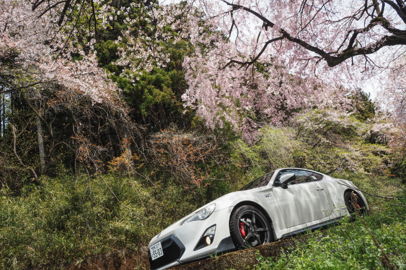 日本のスポーツカーと桜。個人的にとても似合う気がする。