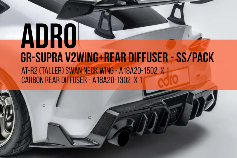 adro(エイドロ)社製、GRスープラ用ボディパーツに更なる空力効果を追加するオプションパーツ”ARD”が近々リリース予定です。フロントアンダーパネル(純正バンパー/5.1フェイスリフトバンパー/5.1ワイドボディバンパーの3バリエーション)+カナードパーツ+リアのウルトラエフェクトディフューザーの構成です。この装備により追加されるダウンフォースは純正車体の21.3倍!GRスープラオーナーの皆様っ!目下価格&詳細確認中ですので、引き続きよろしくお願い申し上げます。 日々精進