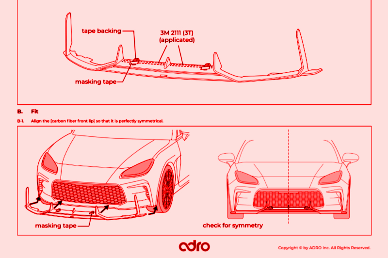 adro製、トヨタGR86用ライトウエイト(インフュージョン式)カーボンフロントリップスポイラーの図。現在弊社にて数セットのバックオーダーを頂いておりまして、やっぱりフルバンパーより純正造形を生かしたリップスポイラーの方が欲しい人が多いと解りました。リップスポイラーと言いつつも、しっかりした三次元の展開です。バンパー両端にあるサイドグリルのエッジが立つ素晴らしい仕立てですよ。現在の受注納期約2カ月!ぜひぜひよろしくお願い申し上げます。ヴェルナーWEBショップ製品ページ(リンク) 日々精進