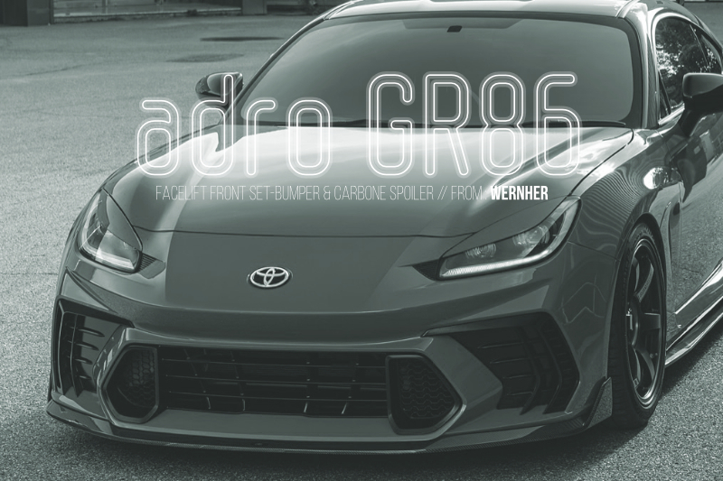 adro社製のGR86&BRZ2Gen用フロントフルバンパー(純正素材同等プルリム成形)+ライトウエイトバキュームカーボンリップスポイラー(セット付属品)がリリースされて約1カ月。弊社での受注は未だナシ!「サイドマーカーが付けば売れるのに(現状では車検非対応部品)、、」と思う反面、このような製品はパッションで買う!が正解な気がします。欲しい衝動と、自分のGR86&BRZ2Genに向けたセットアップの情熱が大事(個人的感覚)。サイドマーカー装着に関しては正規輸入元を介してお問い合わせ済みですが未だ回答ナシ。adro本社の米国LAの方がサイドマーカーの問題が大きいはずなのだけれど。ですので現在のところ、純正バンパーのサイドマーカーブラケット(リアバンパーアーチ)部をそのままadroに接着移植+細部成形という手法ですかね?実装までのハードルが高い分、他の人は買わないので(笑)その分の満足度はとても高い気がする、、!もしかしてコレこそが数を追わないadro社のビジネス戦略なのかも?念の為、ヴェルナーWEBショップの製品予約ページをリンクします。以下、3色のボディーカラーを揃えてみました。