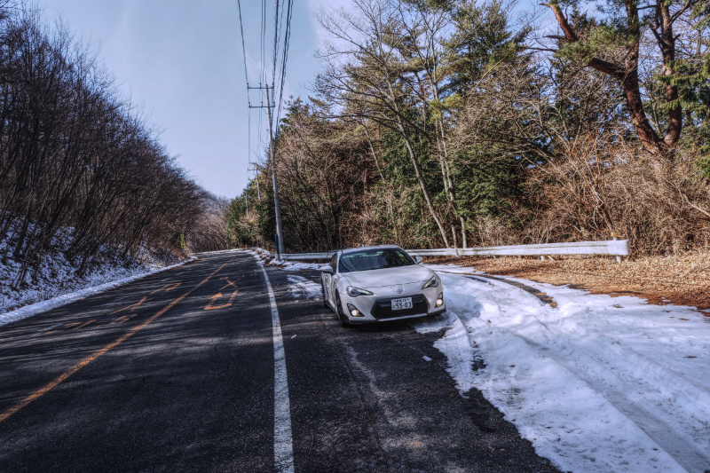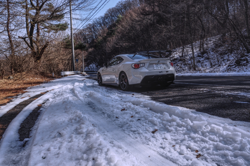 昨日午前中の群馬榛名峠。路肩の雪がレフ盤効果?自前の86が格好良く写りました。
